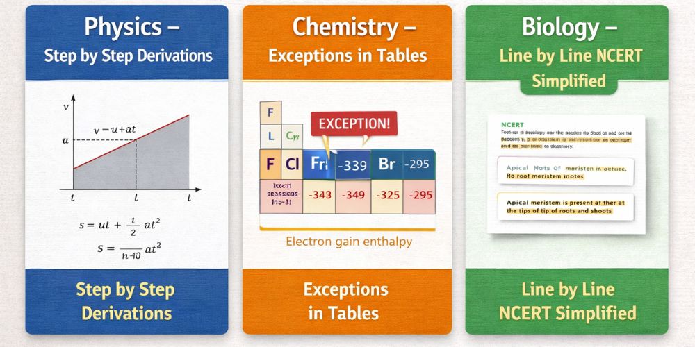 - Why this matters: In competitive exams like NEET, 90% of questions come strictly from NCERT lines. Studying extra creates confusion. NCERT MADE EASY keeps you focused on the bullseye.